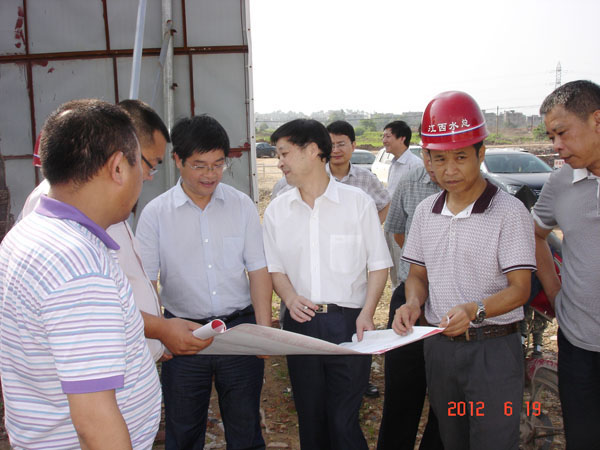 廖瑞釗副廳長深入查看了工程施工現場,聽取了業主、監理和我公司施工管理人員對工程建設情況的匯報:項目部本著“征地拆遷好一段,施工一段”的精神,加快施工進度,確保施工質量,工程進展比較順利,目前主體工程已完成80%左右,計劃于2012年9月底項目全面完工。廖瑞釗副廳長對工程進展表示非常滿意,他要求參建各方再接再厲完成好下一步工作,要進一步提高認識,全面落實安全度汛措施,確保工程質量與安全度汛。
