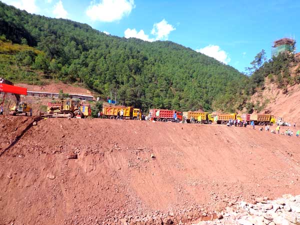 青龍水庫大壩圍堰截流現(xiàn)場(chǎng)