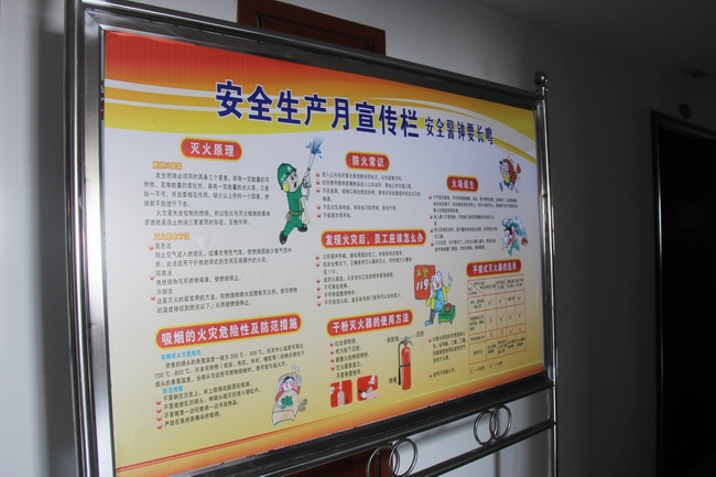 公司總部在辦公樓懸掛“關注安全,平安是福”、“強化安全基礎,推動安全發展”橫幅,并在辦公樓內每層擺放2個安全宣傳牌。