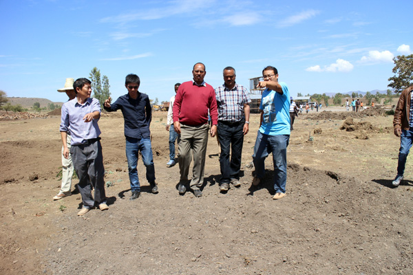 部長Motuma Mekesa一行于上午抵達項目施工現場,隨后對項目渠首及總渠段進行參觀考察。埃塞公司副總經理兼項目經理黃生寶向部長介紹了建設項目概況及項目施工進度,就項目設計、征地等提出了建設性意見和建議,表達了以“服務社會”為宗旨,與各方一道以最快的速度推進項目建設的積極態度。項目經理黃生寶表示,我們將秉承我公司“健行天下,堰筑大同”的精神,以最好的質量,最快的速度保證項目的實施。部長先生對我們的現場建設以及積極的態度表示了肯定,要求設計、征地以及業主單位積極與施工單位合作,保證項目施工質量,加快項目施工速度。同時,相信我公司能堅定信心,積極應對困難與挑戰,在有限的時間內圓滿完成任務。