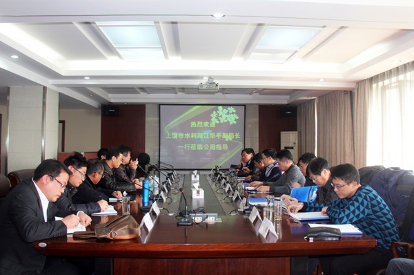 2月15日,上饒市水利局副局長江華平一行來公司就企業改制工作進行調研。公司董事長王元旦、總經理徐洪良、黨委書記王延軍、副總經理兼江西海外公司執行董事張周平、副總經理曾朝文等一同參加了調研座談。