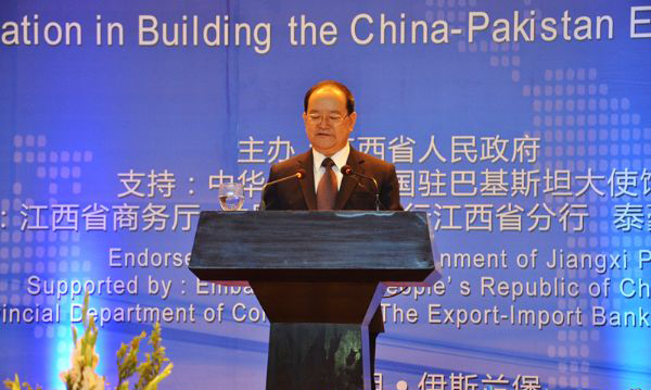 2017年4月20日,由江西省人民政府主辦,中華人民共和國駐巴基斯坦大使館支持,江西省商務廳、中國進出口銀行江西省分行等承辦的“央企-贛企合作建設中巴經濟走廊懇談會”在巴基斯坦首都伊斯蘭堡召開,中共江西省委書記、江西省人大常委會主任鹿心社應邀出席會議并致辭。