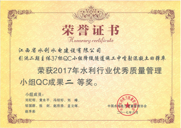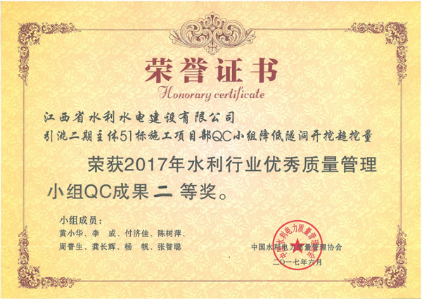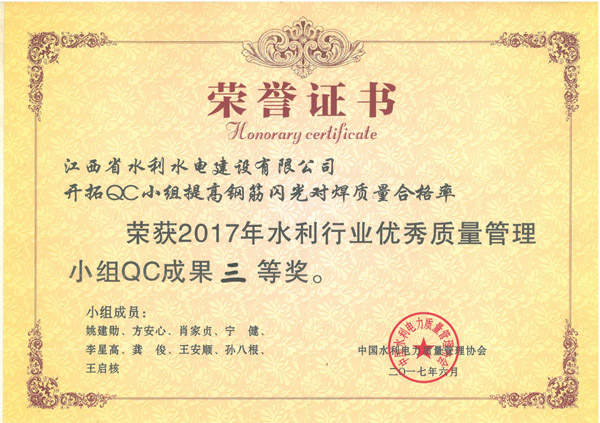 公司連續(xù)3年獲水利行業(yè)優(yōu)秀QC小組成果獎(jiǎng)