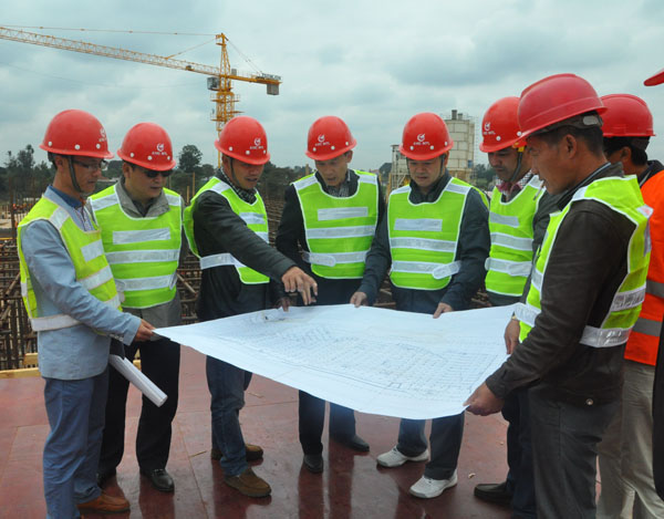 2014年8月8號,公司董事長王元旦、總會計師王義生,副總經理張周平、黃鄭民一行抵達肯尼亞,開始了為期一周的巡視指導工作。剛下飛機,董事長王元旦一行便馬不停蹄地趕往位于肯尼亞首都內羅畢的雙河房地產項目一期、二期工地進行視察。