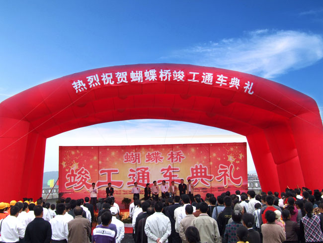 九月金秋,流光溢彩。2010年9月30日,在祖國華誕即將到來之際,我公司承建的宜春市秀江三級抬水壩及景觀橋(又稱為蝴蝶橋)工程舉行了竣工通車典禮。