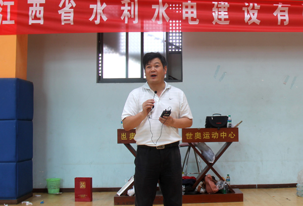 公司黨委書記、董事長總經理王元旦首先作開幕致詞。他在講話中說,為豐富公司員工的文化體育生活,公司在此舉辦員工籃球賽,這次比賽旨在增進公司各單位之間的團結和友誼,為江西水總培育集團型企業凝聚力量、注入新的活力,具有重要的紀念意義。希望參加比賽的各支球隊和隊員頑強拼搏,賽出成績,勇爭第一,同時要堅持友誼第一,比賽第二的原則。作為開展建黨90周年慶?;顒又?,通過本次比賽,共同祝愿偉大的中國共產黨和國家各項建設事業更加繁榮昌盛。黨委副書記王延軍宣布公司籃球賽開始。