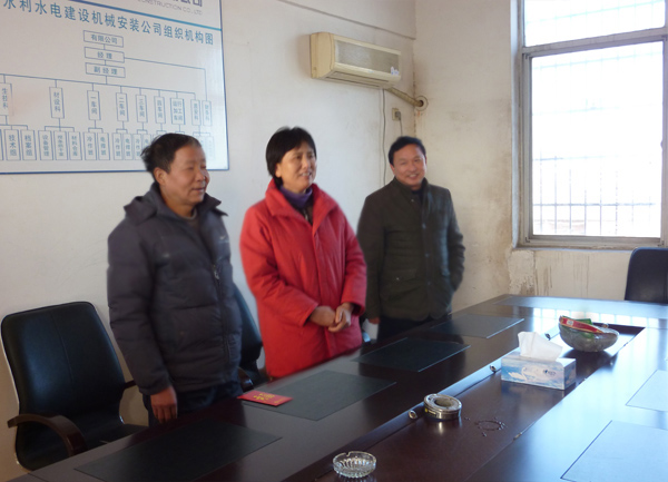 2014年1月21日上午,在新春佳節來臨之際,省水利廳副巡視員周江紅、廳機關黨委專職副書記張伯義、廳直工會副主席池曉虹及團委負責同志一行四人來到我公司基地走訪慰問困難職工趙春生等同志,并送上了慰問金、慰問品及新春祝福。