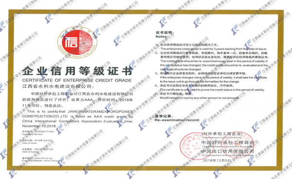 此次公司再度榮獲“2018年度AAA級信用企業”稱號,源于數百名江西水建海外人的共同努力,他對于公司進一步提升品牌影響力,拓展國際市場具有十分重要的意義。