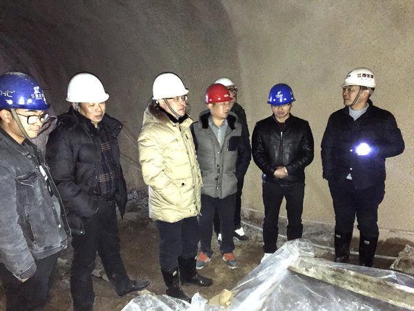 期間,徐洪良總經理一行與業主、設計、試驗檢測、監理等單位的領導頂著鵝毛大雪,參加了37標1#隧洞貫通儀式。