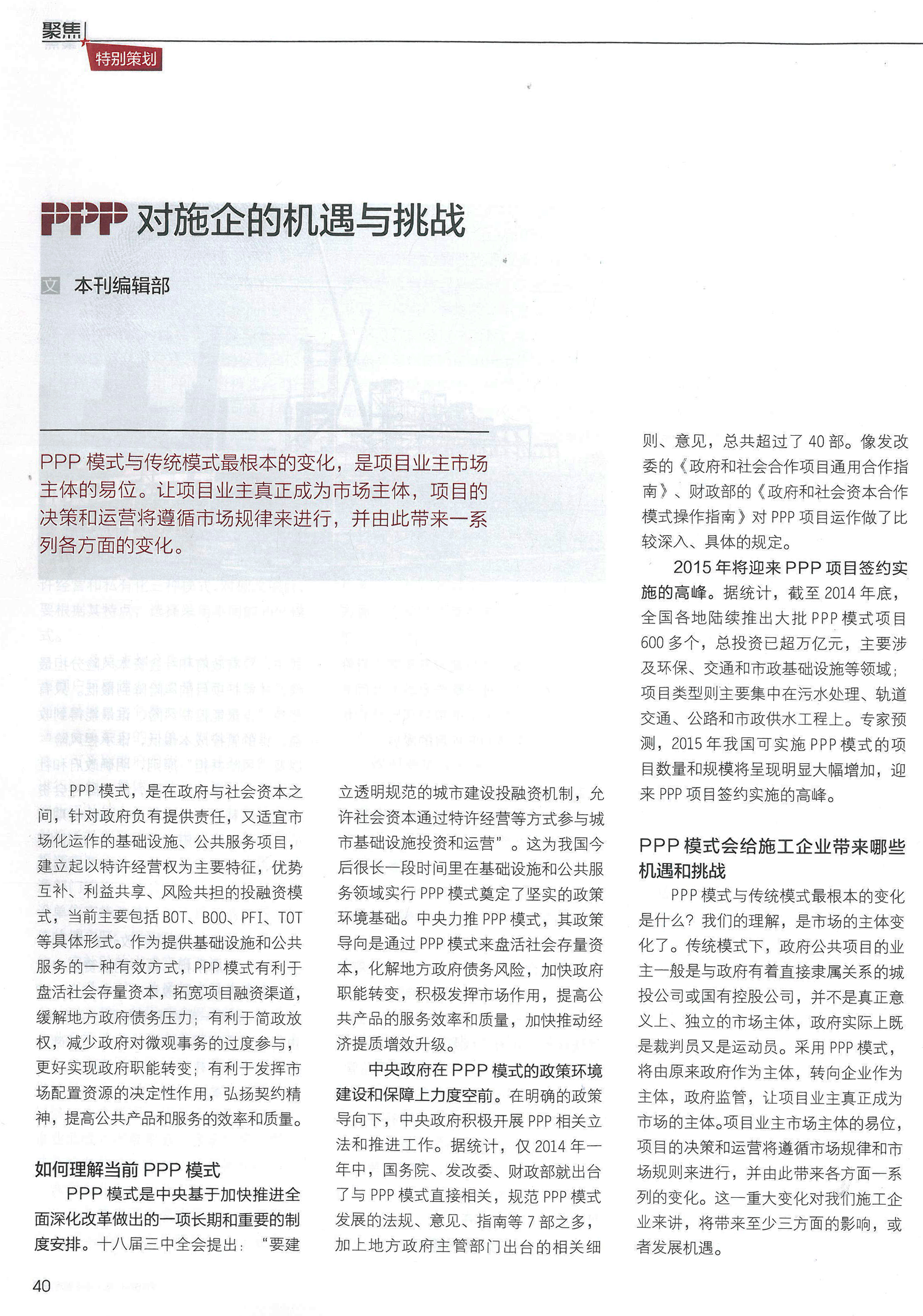 PPP對(duì)施企的機(jī)遇與挑戰(zhàn)
